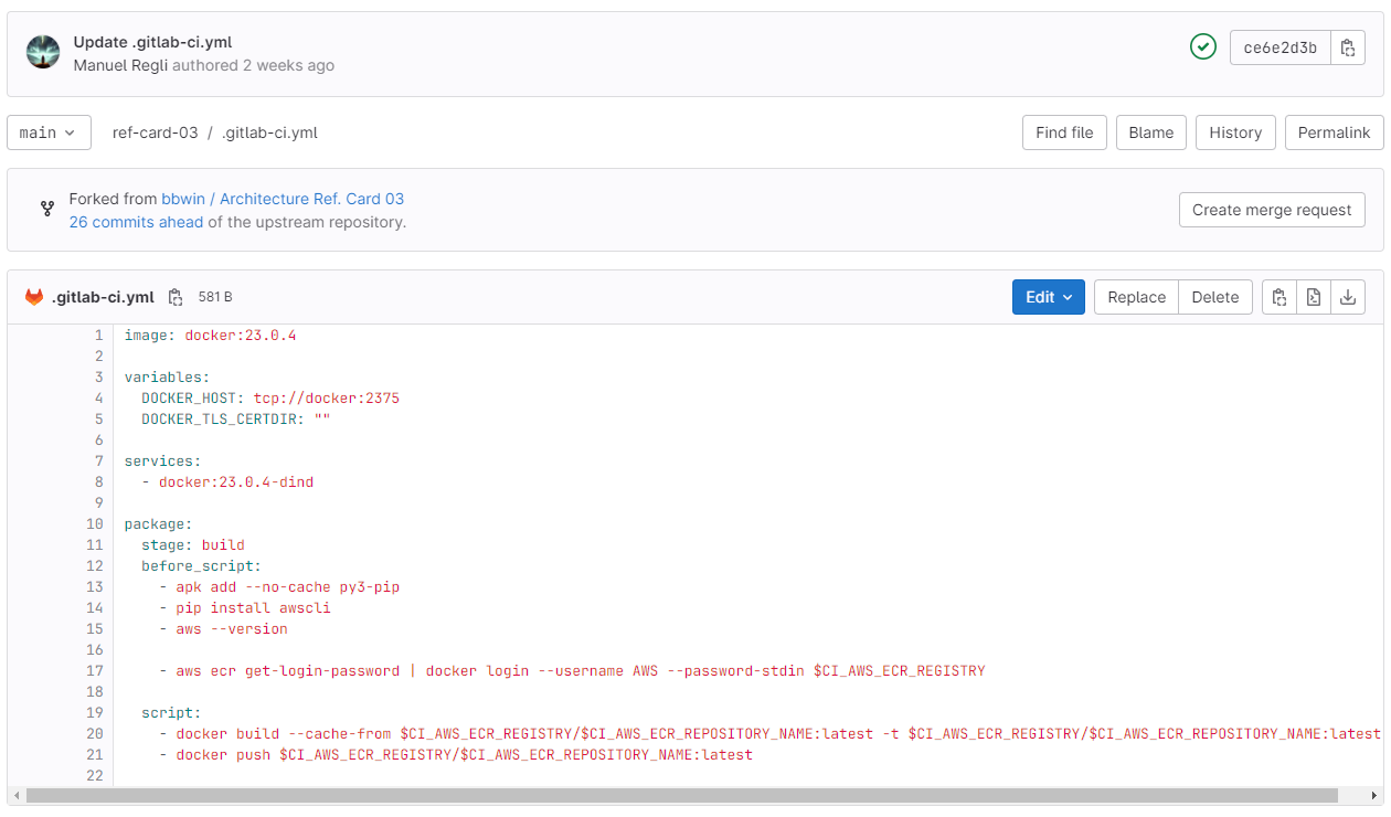 Im Folgenden wird ein .gitlab-ci.yml vorgestellt, das dazu dient, ein Docker-Image zu generieren und es in ein AWS-Repository hochzuladen.