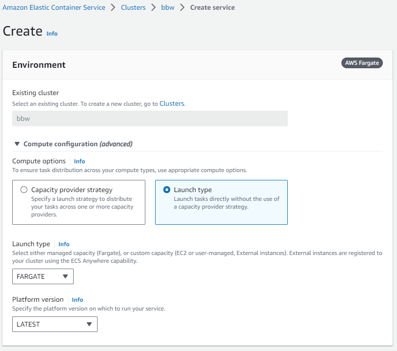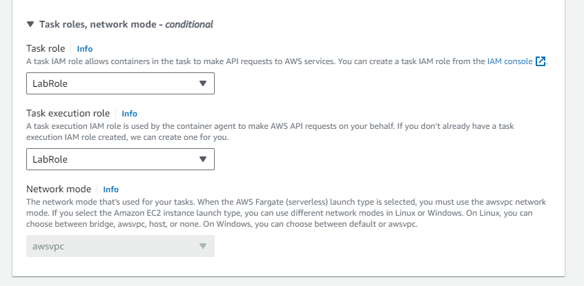 Für Task-Rolle und Task-Ausführungsrolle sollten wir "LabRole" auswählen.