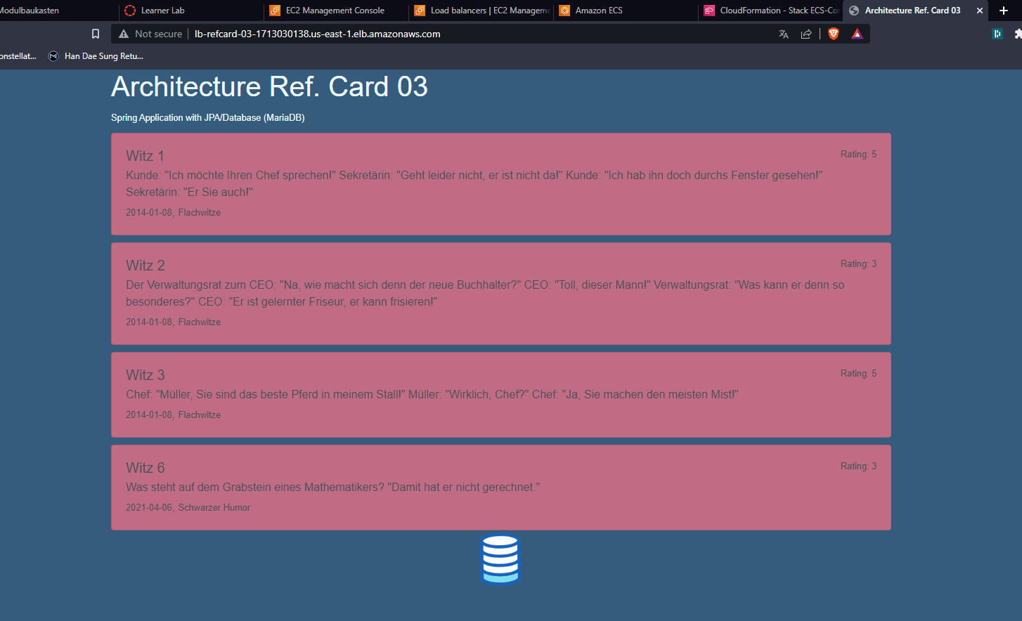 Diesen Loadbalancer-Namen geben wir dann in den Browser ein und nach einiger Zeit sollten wir die Webanwendung sehen.
